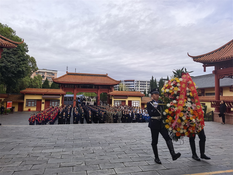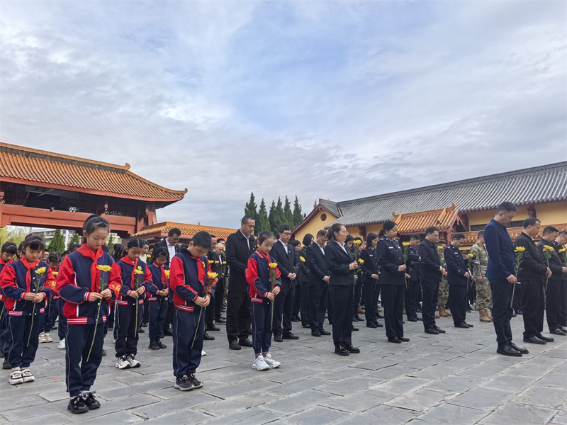 上午9时,全体人员神情肃穆、整齐列队。当《义勇军进行曲》响起,全场齐声高唱国歌,声音在苍松翠柏间回荡。国歌唱毕,时间仿佛凝固——全体人员垂首默哀,向为中国人民解放事业和共和国建设事业英勇献身的烈士致以最深沉的敬意。