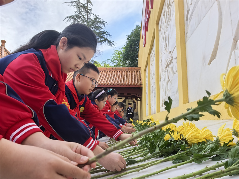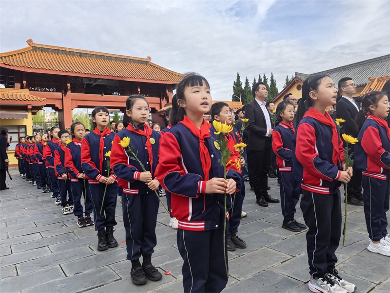 缅怀仪式后,少先队员代表齐声高唱《中国少年先锋队队歌》。歌声清亮,誓言铮铮,仿佛在告慰英灵:红色基因,后继有人。