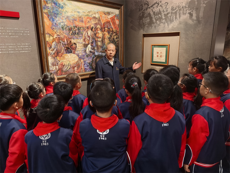 黄继光纪念馆副馆长、特级英雄黄继光的侄子黄拥军为孩子们讲述英雄故事。(罗园 摄)