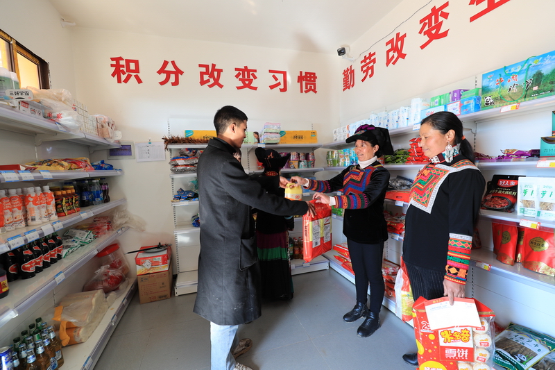 积分怎么获得?在积分超市门外的墙上,一块一米见方的广告牌上张贴有《“积分管理”办法》,展示着积分赚取办法和积分标准:“弘扬文明新风,自觉遵守高价彩礼‘双高’治理,红白喜事按县规定办理,无大操大办的,每次积50分……”吉夺衣曲介绍说,村里每户家庭都有一张积分卡,每月公示积分排名前10位和后10位的家庭,表彰先进,激励后进。另外,茗新村每年还会从村集体经济所得中拿出30万元,作为运行经费投入“积分超市”,在让积分奖励多了一份经费来源的同时,更好地调动了村民参与移风易俗、文明乡风建设的主动性。