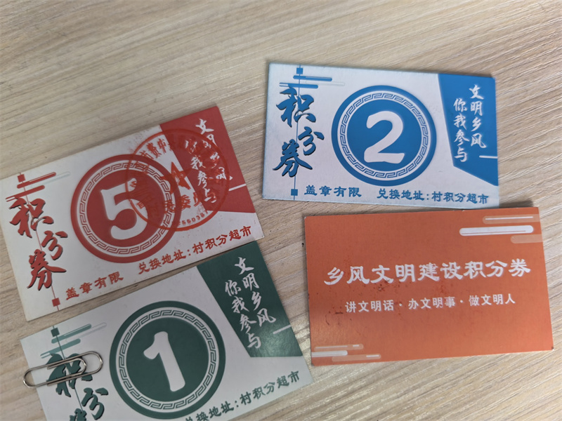 四川省内江市资中县双龙镇檬茨村积分超市为村民发放的积分卡。(罗园 摄)