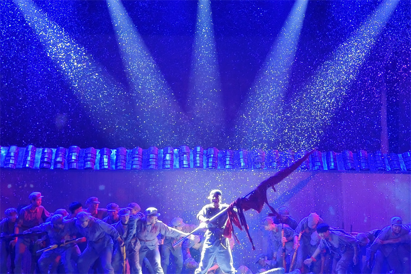 木门会议、四渡赤水、游击作战……扣人心弦的历史事迹在舞台上“活”了过来,将红军和劳苦大众不怕牺牲,以血肉之躯铸就精神丰碑,最终迎来胜利曙光的动人故事呈现出来。精彩的表演一次次触动台下观众的泪点,经久不息的掌声萦绕在演出厅内。