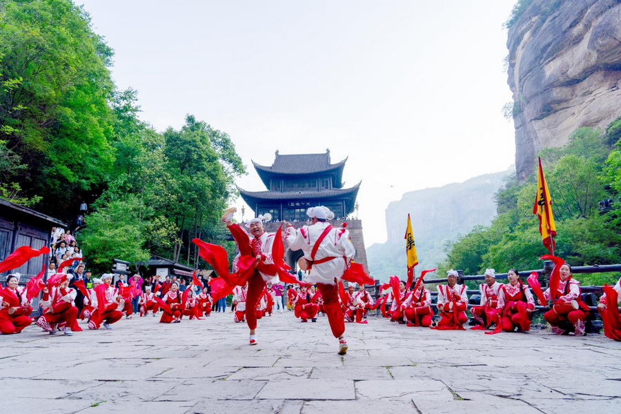 安塞腰鼓团队在剑门关景区表演。剑阁县委宣传部供图