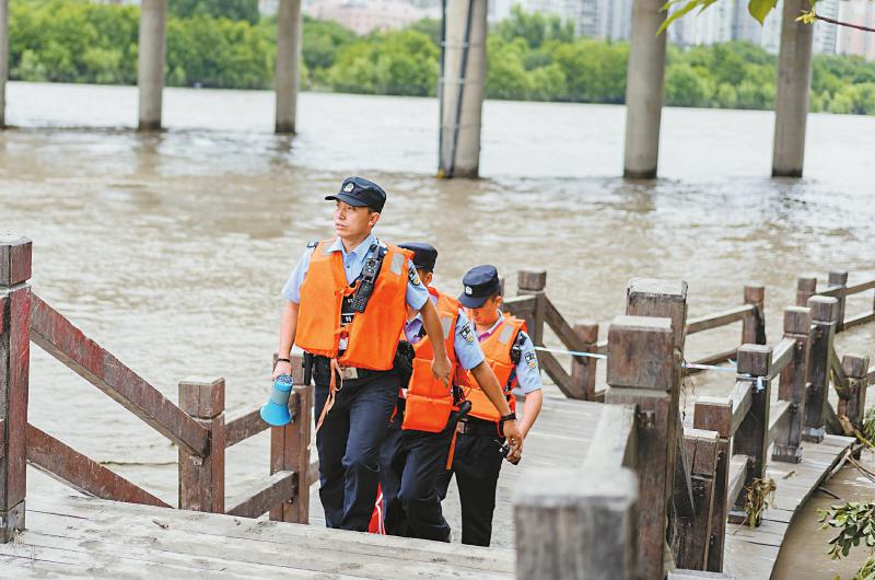 7月6日,绵阳市公安局特巡警支队巡逻二大队民警在涪江流域东方红大桥河段巡查,排查安全隐患。唐超 摄(C视觉)