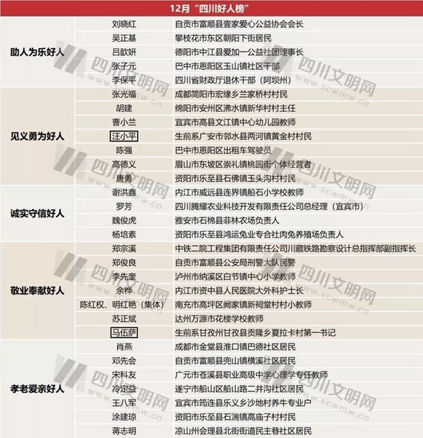 12月26日上午,“四川好人榜 新时代好少年先进事迹”发布仪式暨道德模范与身边好人现场交流活动走进资阳市乐至县。活动中,2019年12月“四川好人榜”正式发布,30位“四川好人”入围。