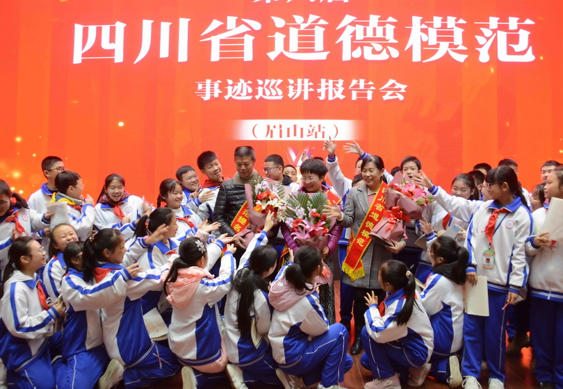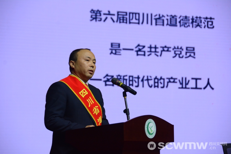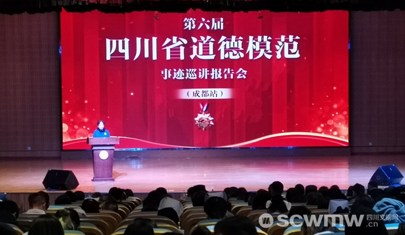 11月18日上午,第六届四川省道德模范事迹巡讲报告会首场巡讲在成都师范学院鱼凫音乐厅举行。
