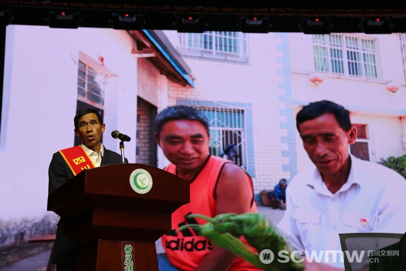 在第六届四川省道德模范事迹巡讲凉山站,第六届四川省诚实守信模范杨朝华作报告。