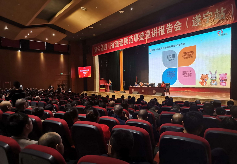 在巡讲报告遂宁站,数百名来自各行各业的群众聆听了道德模范故事,感受道德力量。