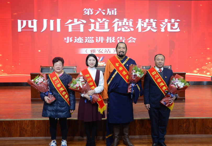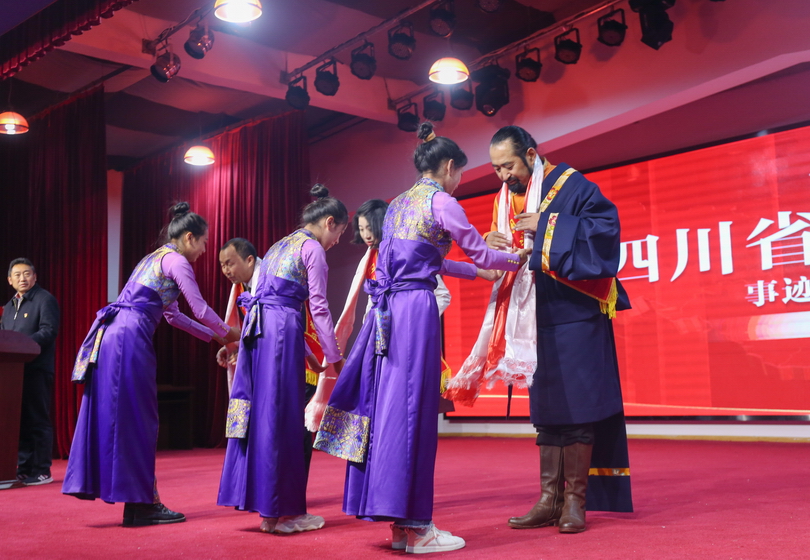 阿坝人民献上哈达、羌红,致敬道德模范。