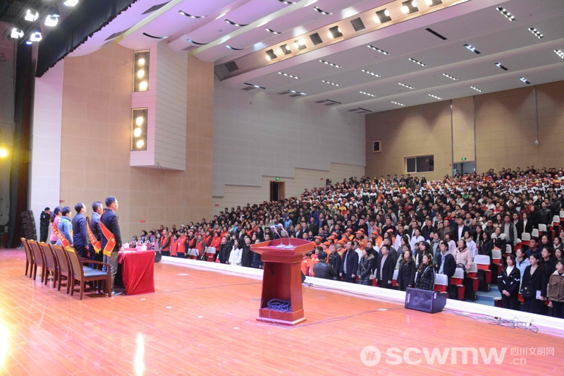 在第六届四川省道德模范事迹巡讲报告会广元站,全场起立奏唱国歌。