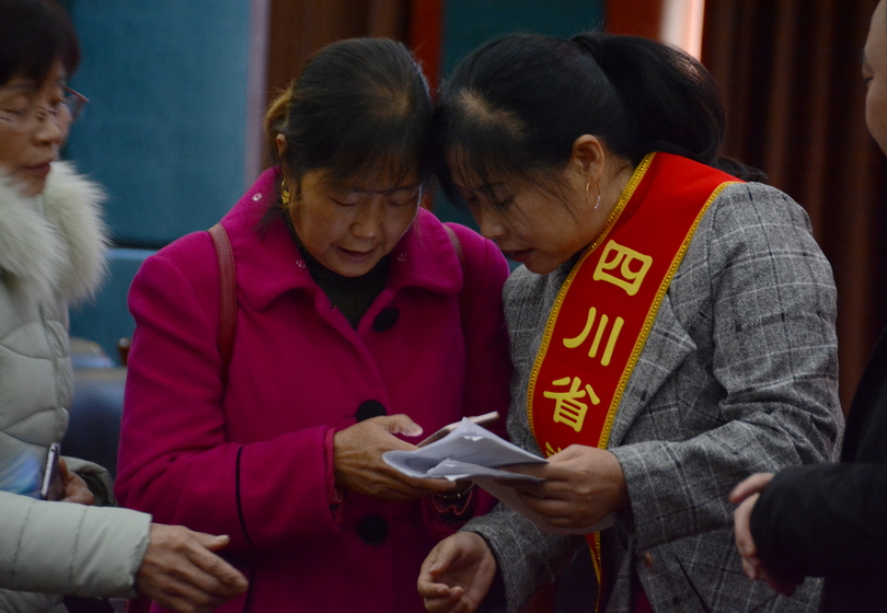 观众李雪梅在刘春香分享时数次热泪盈眶。报告会后,她一直等到合影结束,找到刘春香留下了联系方式。