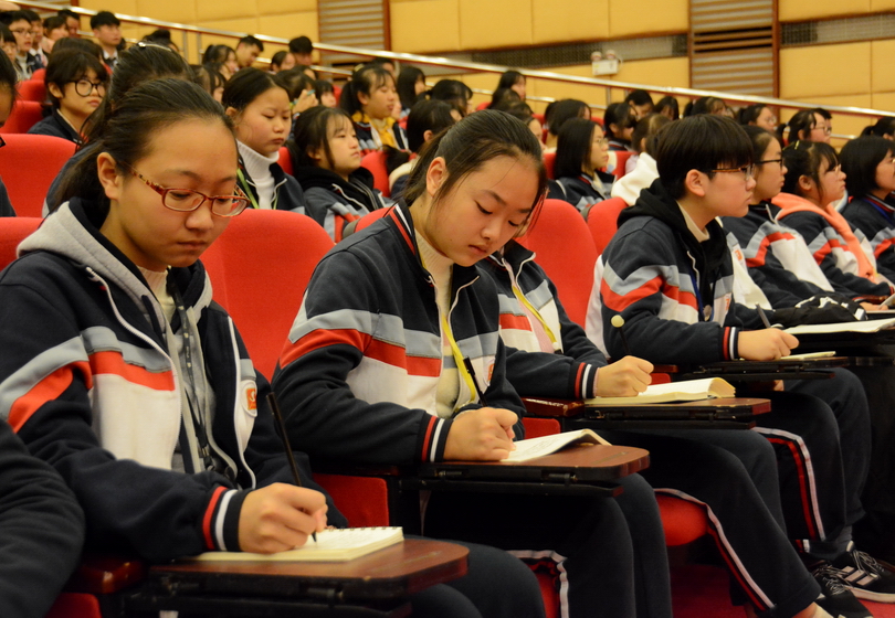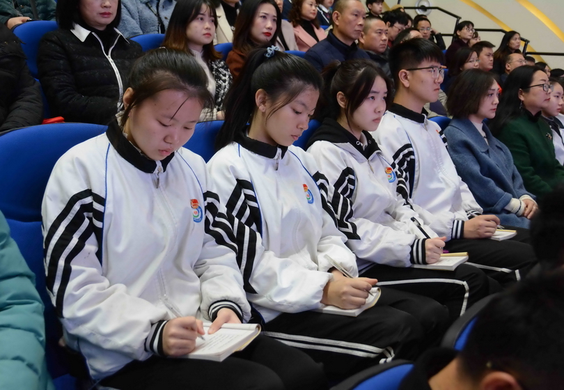 巡讲报告会资阳站,观众认真聆听记录模范事迹。