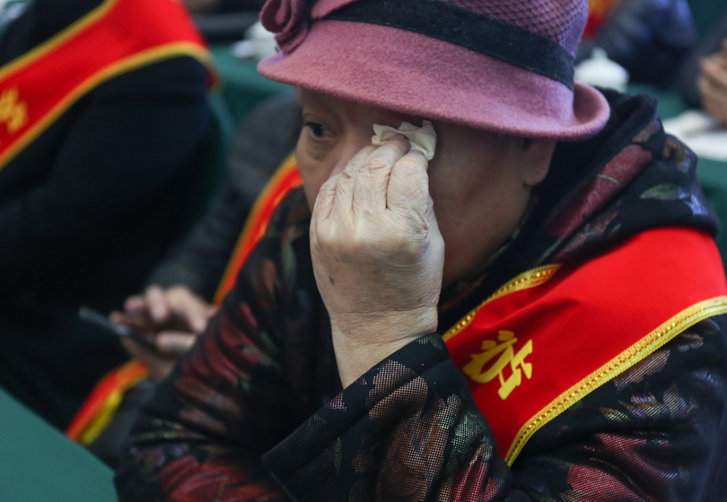 在第六届四川省道德模范事迹巡讲报告会广元站,现场观众被道德模范事迹打动。