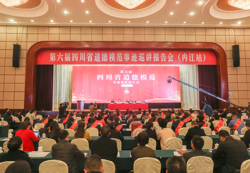 第六届四川省道德模范事迹巡讲报告会内江站现场。
