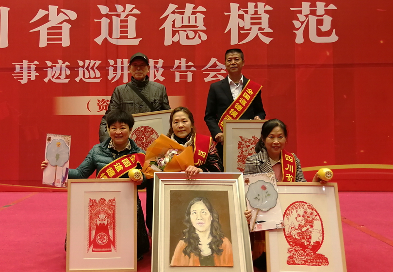 绵阳为道德模范们赠送了极具非遗特色的文昌祖庭年画。