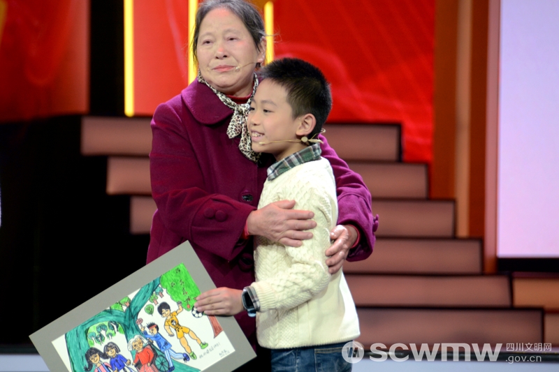“再过一段时间是外婆的生日,我准备了一幅画送给外婆。画里面是我们的全家福,有祖母、外婆、妈妈、爸爸还有我。外婆是我们的骄傲,她是世界上最伟大的外婆!祝外婆健康长寿,永远开心。”颁奖仪式现场,孝老爱亲道德模范钟惠芝的外孙赵思菡向外婆深情告白。家住成都市青羊区桂花巷的钟蕙芝,婚后仅一年四个月时间,丈夫便因病去世,留下刚出生40天的女儿和年迈的养父母。钟蕙芝独自撑起一个家,一边抚养年幼的女儿,一边照顾养父母。如今钟蕙芝的婆婆已经94岁高寿,女儿和外孙在她的言传身教下也十分孝顺。钟蕙芝说:“我觉得没有什么很难很辛苦的,我反而觉得很幸福。”