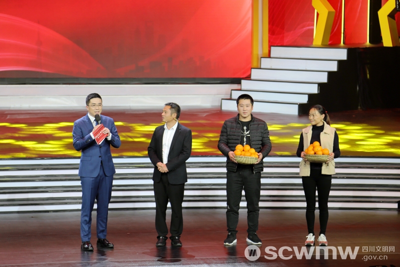 颁奖仪式现场,来自内江市市中区全安镇诚实守信道德模范张家顺和当地村民一同带来了清甜可口的柑橘。张家顺18岁开始创业,2011年返乡创业,集资组建合作社,大规模种植甘蔗,但遭遇极端天气,导致16.67公顷甘蔗全部受灾,亏损85万元。他挨家挨户找到借钱给自己的亲朋好友及没有领到工资的村民,赔礼道歉留下欠条,承诺3年内还清欠款。随后,张家顺重镇旗鼓,成立了农村合作社,尽己所能偿还欠款,带领乡亲们在致富的道路上越走越稳。村民们都愿意跟着张家顺干,他们说:“他是诚信的人,我们相信他。”
