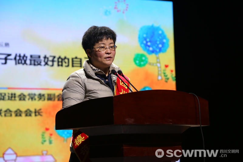 在第六届四川省道德模范事迹巡讲德阳站,第六届四川省助人为乐道德模范傅艳作报告。