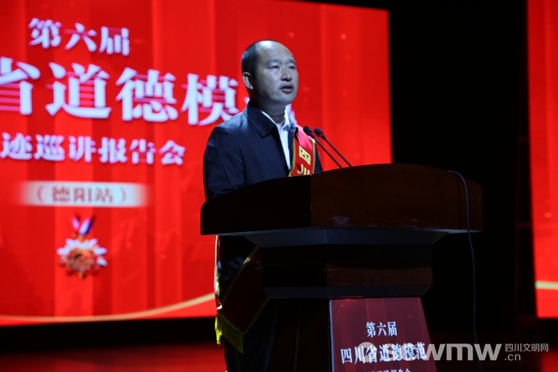 在第六届四川省道德模范事迹巡讲德阳站,第六届四川省见义勇为道德模范龚志敏作报告。