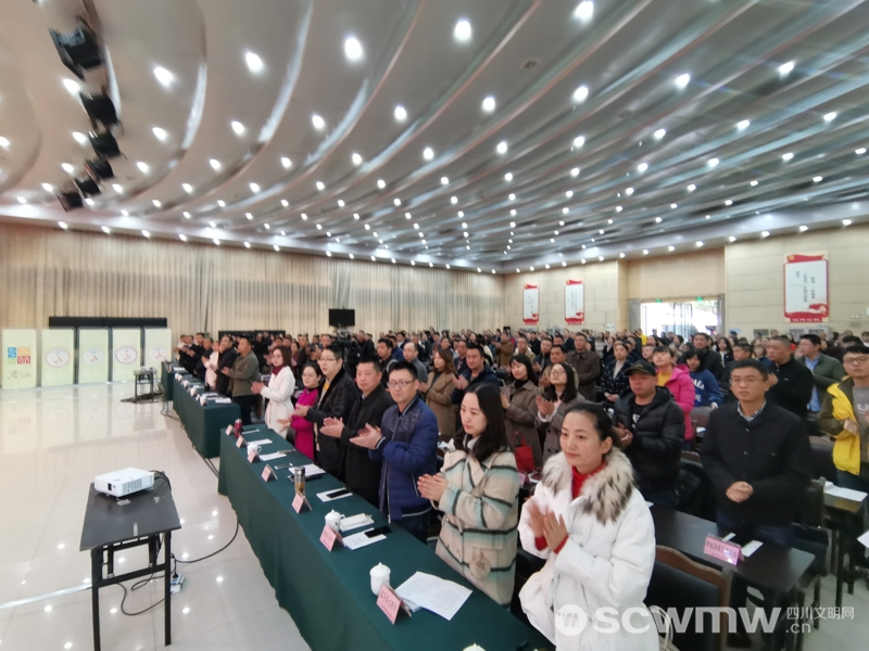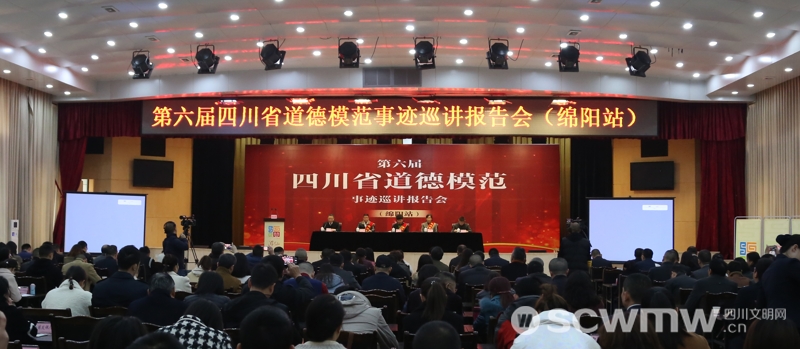绵阳站巡讲活动现场,数百名群众认真聆听模范事迹。