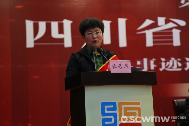 在第六届四川省道德模范事迹巡讲绵阳站,第六届四川省助人为乐道德模范傅艳作报告。