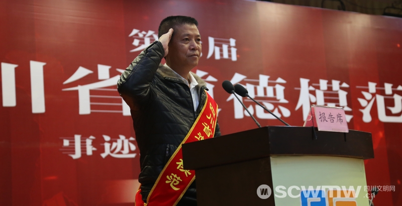 在第六届四川省道德模范事迹巡讲绵阳站,第六届四川省见义勇为道德模范龚志敏作报告。