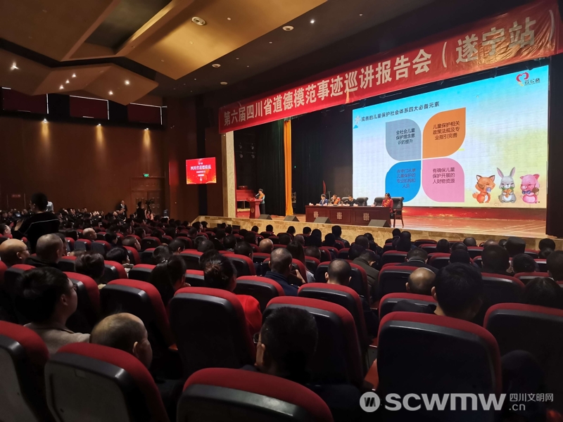 在巡讲报告遂宁站,数百名来自各行各业的群众聆听了道德模范故事,感受道德力量。