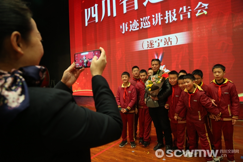 当天,遂宁市各机关党员干部、企业职工、学生代表等700余人聆听了事迹报告会。会后,许多学生久久不愿离去,有的走上舞台和模范合影,有的围在模范们身边请教问题。