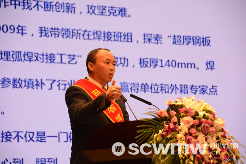 第七届全国道德模范、第六届四川省敬业奉献模范其美多吉作报告。