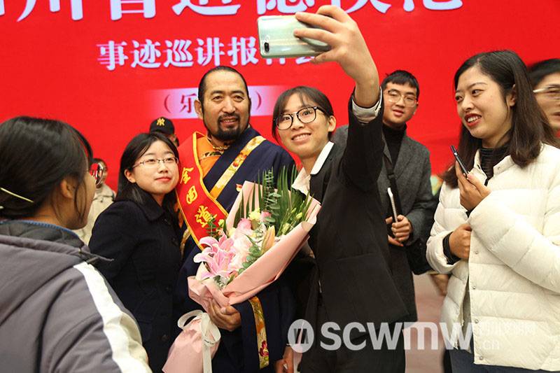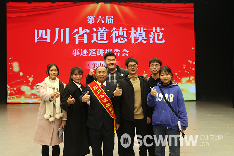 乐山籍第六届孝老爱亲道德模范蔡冬凤也出席了报告会。