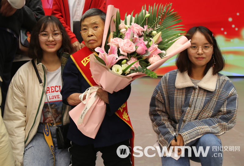 当天,乐山籍第六届孝老爱亲道德模范蔡冬凤也出席了报告会。蔡冬凤是乐山市峨眉山市桂花桥镇蔡村村民。4岁时,蔡冬凤因意外失去双手双脚,从此只能跪着走路。父亲去世后,她辍学在家照顾两个妹妹。蔡冬凤种了两亩半地,同时编簸箕、打草鞋、开榨油坊,跪着撑起了整个家。如今,已年过古稀的她一如既往地坚持独自照料106岁的母亲,为母亲做饭、洗脸、穿衣样样得心应手。