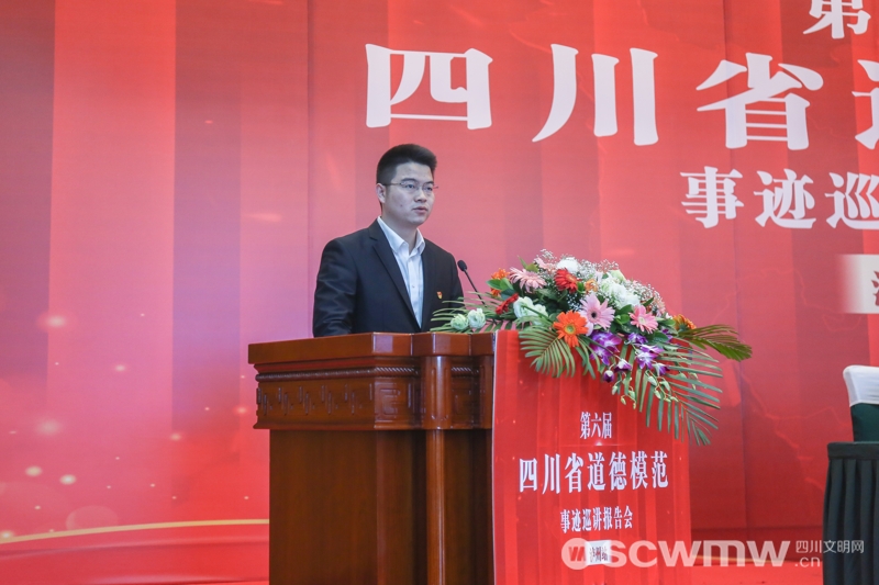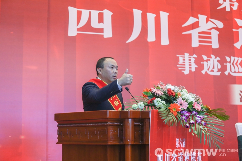 勇斗歹徒,英勇护卫人民邮件,不畏艰险,扎根川藏邮路30年,第六届四川省敬业奉献道德模范、中国邮政集团公司四川省甘孜县分公司驾驶员——其美多吉;从业26载,从“门外汉”成长为“金牌焊接师”,手臂上的烫伤是他的职业勋章,第六届四川省敬业奉献道德模范、中建钢构四川有限公司焊接培训中心主任——梁飞;全身心奉献脱贫攻坚,用宝贵生命书写了一曲对党的事业无限忠诚的“乌蒙壮歌”,第六届四川省敬业奉献道德模范、生前系泸州市古蔺县文化市场综合执法大队队员——余芬;近百位孤寡老人唯一的“亲人”,用青春点亮“五保”老人的晚年,第六届四川省诚实守信道德模范、江油市义新敬老院院长——张巧。11月27日上午,第六届四川省道德模范事迹巡讲团第二轮巡讲的第三场活动在泸州举行,4位道德模范的感人事迹给现场观众带来了强烈的心灵震撼。虽然事迹不同,但他们都在平凡的岗位上,用奉献书写了不平凡的人生华章,汇聚起强大的道德力量。