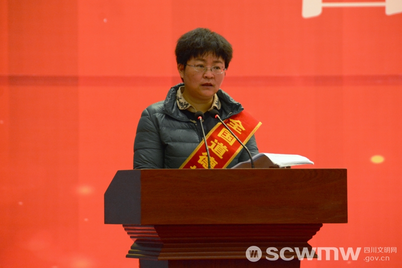 在第六届四川省道德模范事迹巡讲报告会资阳站,第七届全国道德模范提名奖获得者、第六届四川省道德模范龚志敏作报告。