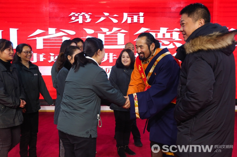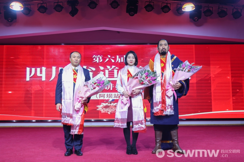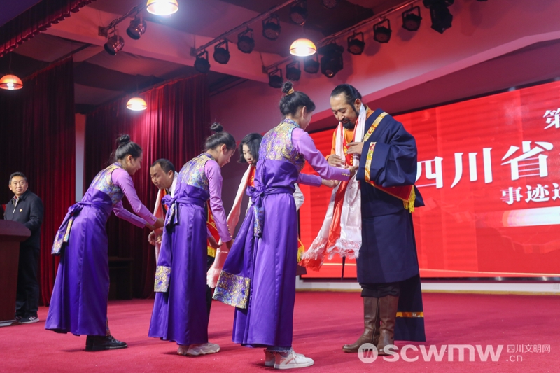 阿坝人民献上哈达、羌红,致敬道德模范。