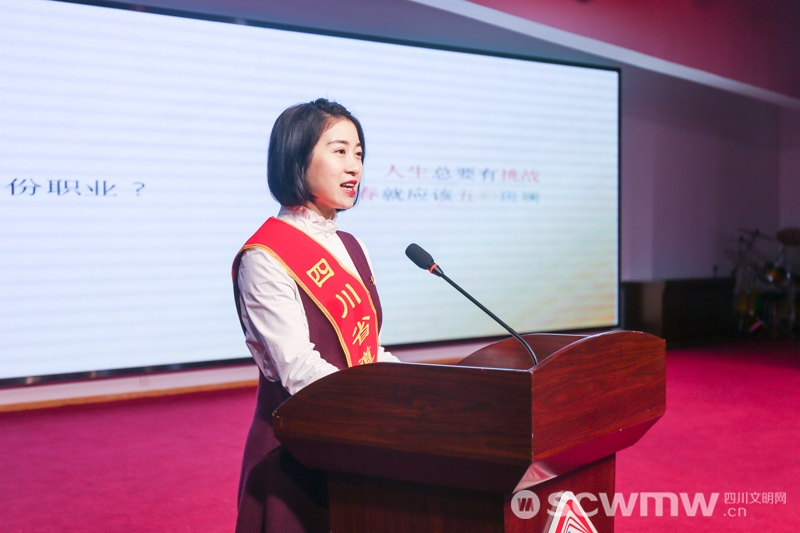 在巡讲报告会阿坝站,第六届四川省诚实守信模范张巧作报告。