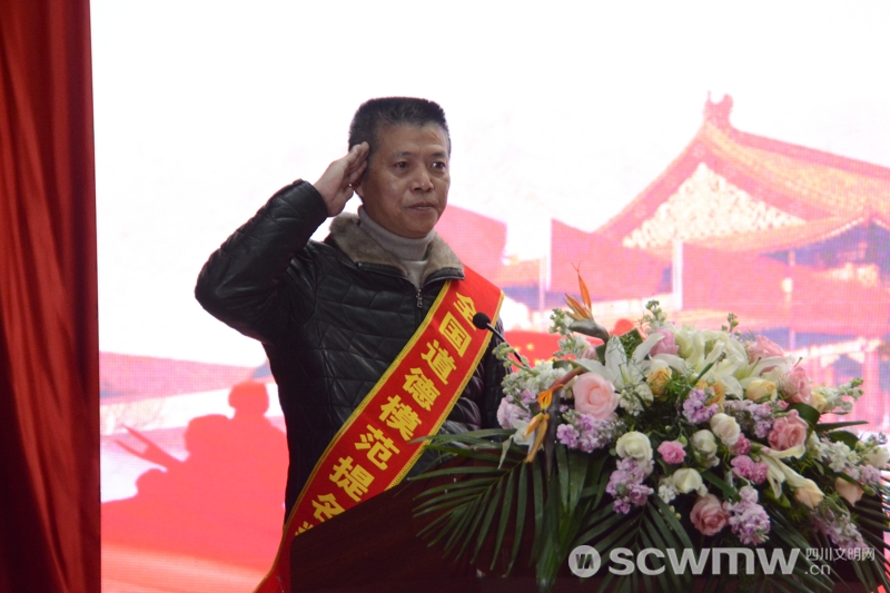 在第六届四川省道德模范事迹巡讲报告会眉山站,第七届全国道德模范提名奖获得者、第六届四川省道德模范龚志敏作报告。