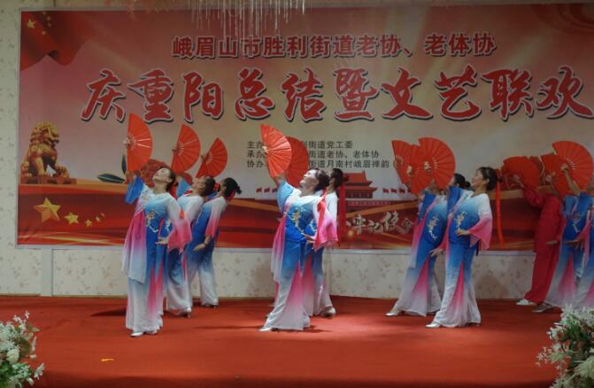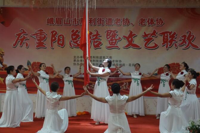 文艺联欢会在舞蹈《在希望的田野上》拉开帷幕。接着,胜利街道月南村的舞蹈《九月九》、夏荷村的舞蹈《孝亲敬老新风尚》、红星村的舞蹈《握着妈妈的手》、光荣村的舞蹈《你的生命如此美丽》、干河村的舞蹈《孝敬父母》等节目陆续登台演出。峨眉山市老年大学表演了《唱支山歌给党听》《望月》《天下第一情》《祖国吉祥》、时装走秀等精心编排的文艺节目。精彩的演出赢得了场上阵阵掌声。