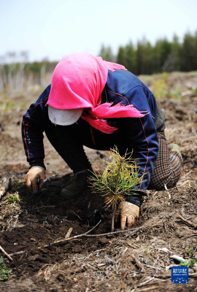 塞罕坝机械林场工人在石质阳坡上造林(2016年4月13日摄)。新华社发