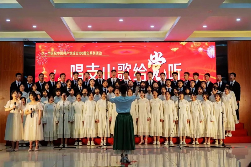 “春笋蓬勃、夏天将至,漫山开遍映山红的时候,最是应景唱一唱我们党的颂歌。”副校长邹小林说,在历史的洪流中,达州市第一中学校走过了115年的峥嵘岁月,秉承“崇德、健体、励志、博学”的殷殷校训,从龙山书院成长到今天,当中必然是“奋斗的血泪”“牺牲的细雨”“创造的勇气”以及“实干的精神”“歌声会教诲我们热爱,歌曲会带动我们传承”。