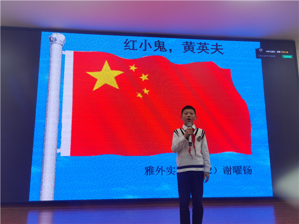 为庆祝建党100周年,4月29日,雅安市外国语实验小学以“红领巾 学党史 树初心”为主题开展了“党史我来讲,红色照我心”的演讲比赛。活动围绕百年党史中的青年志士和红色故事,旨在用党史故事传承红色精神,强化青少年思想政治引领,让少先队员们坚定听党话、跟党走的理想信念。