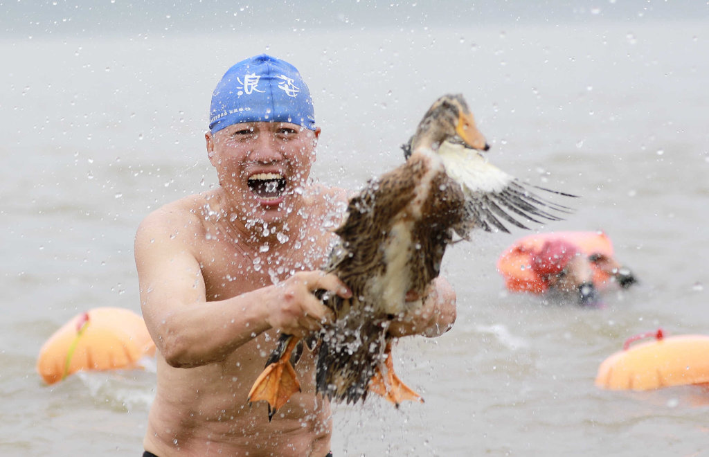 每逢端午节,人们会举办抢鸭子民俗活动,共同祈福平安健康。罗平 摄(资料图片)