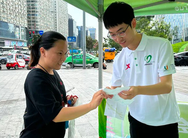小站的志愿者们精心设计了明信片发放给居民朋友,他们将成都成华的区域特色、大运会的筹办过程等元素融入其中,以大运会志愿者之名,将大运会的精神和爱,传递给市民朋友们,邀约市民共享成都大运会。【详情】