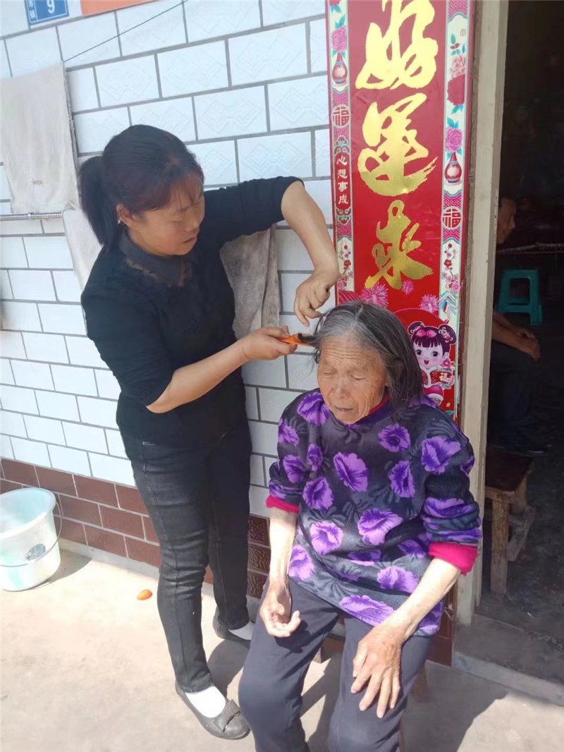 陈秀英老人生前,郑德琼悉心照料。(该图由郑邻居提供)