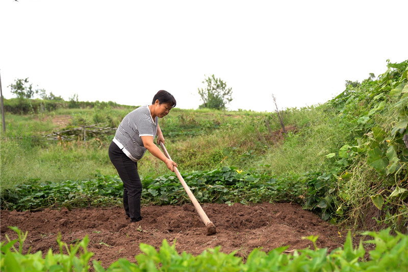 再次见到郑德琼,是9月初的一个清晨。太阳初升,她正趁着天气凉爽,在田里锄地,短发圆脸,干净利落。