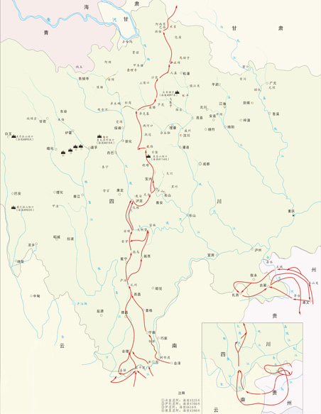 川西北草地面积约15200平方公里,海拔3500米以上,每年5月——9月正值雨季,草地沼泽泥潭无路可行。红军指战员克服行走、饥饿、御寒、宿营的困难,胜利走出了人迹罕至,气候变幻无常的茫茫草地。
