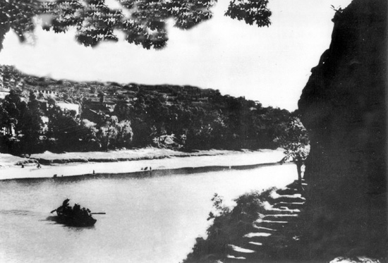 红军渡金沙江时,毛泽东、周恩来、刘伯承住过的石洞,他们在此指挥红军渡江。