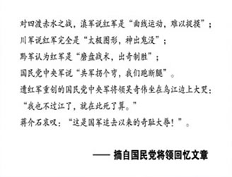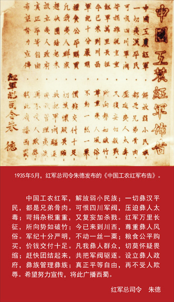 党中央率领红一方面军从1935年1月一渡赤水进入四川,制定了建立川陕甘新苏区的战略方针,同张国焘坚持南下、分裂党和红军的错误进行了坚决斗争,至9月离开四川。红一方面军在四川留下了不畏艰险的足迹和不朽的战斗传奇,取得了许多战略转移中具有决定意义的胜利,播下了革命的火种。