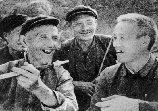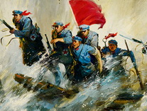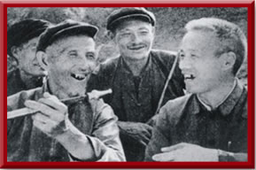 当年37名船工分成两班,不分昼夜,人歇船不歇,为3万多名红军渡江立下汗马功劳。图为当年帮助红军巧渡金沙江的三位老船工和红军老战士相聚的情景。