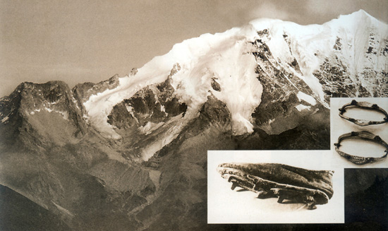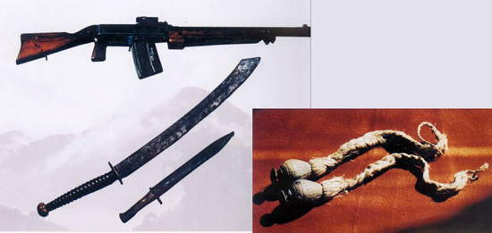 红军长征翻越雪山时穿过的脚码子、女红军爬雪山时穿的防滑鞋。