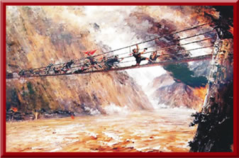 1935年9月10日凌晨,中共中央率红军右路军中的红1、红3军及军委纵队从阿西、求吉地区出发,经过求吉河的风雨桥离开四川先行北上,进入甘肃迭部县。图为位于若尔盖县求吉乡求吉河上红一方面军经过的风雨桥。